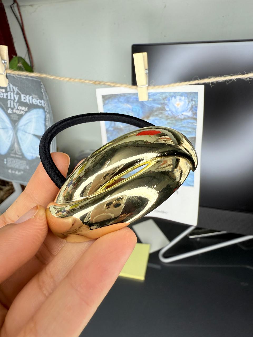 š Sleek, sculpted, and effortlessly stylish ā this golden shell hair tie is for the girl who loves subtle luxury with a side of shine.